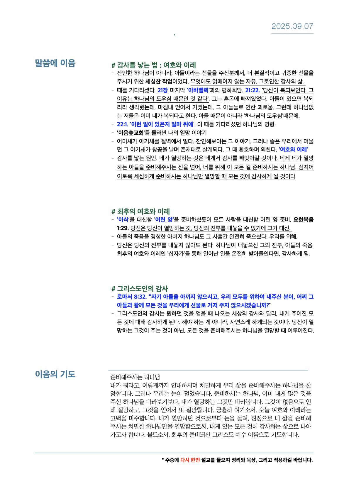 25.8.31 “여호와는 나의 목자시니” [시편 23편]